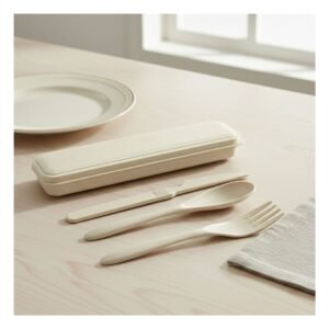 Set 3 Cubiertos Reutilizables con Estuche Portatil Compacto Color Beige