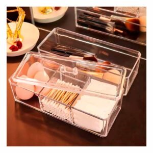 Pack2 Caja acrilica 2 divisiones con tapa transparente para guardar objetos del hogar
