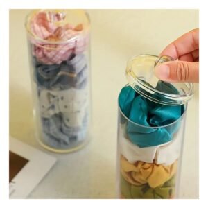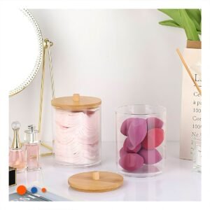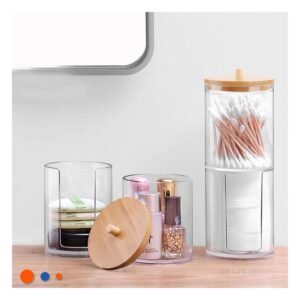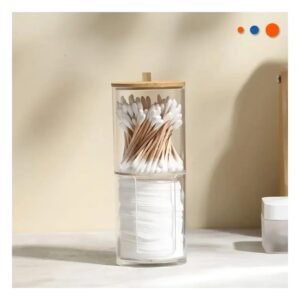 Dispensador Acrilico con tapa de algodon para aseo y tocador transparente