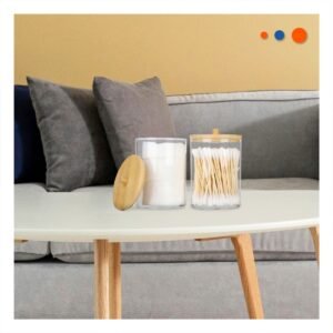 Pack2 Frasco Acrilico con Tapa de Madera 7x11cm Transparente para Hisopos