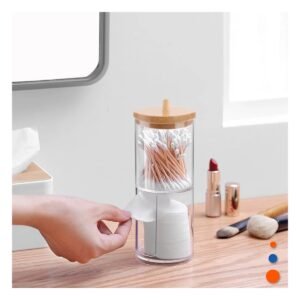 Dispensador Acrilico con Tapa de Madera 7x11cm Transparente para Hisopos