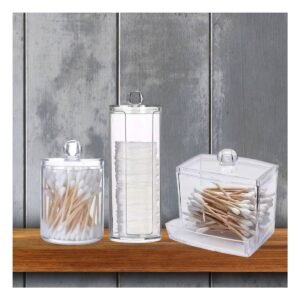 Pack2 Sistema Organizador de Acrilico Transparente para Hisopos y Algodon en Casa