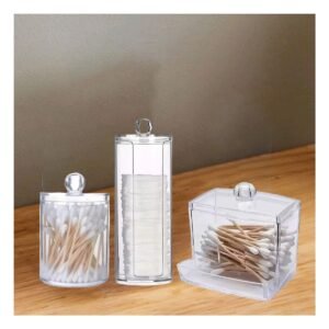 Set de Organizadores de Acrilico Transparente para Hisopos y Algodon Uso Hogar