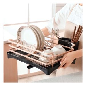 Escurridor de Cocina con Soporte para Utensilios y Drenaje en Oro Rosa Y+Regalo Sticker