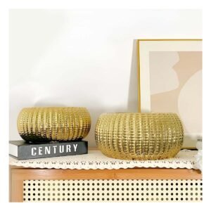 Pack2 Planta Cuenco Ceramica Dorado Acanalado Para Sala Y Jardin