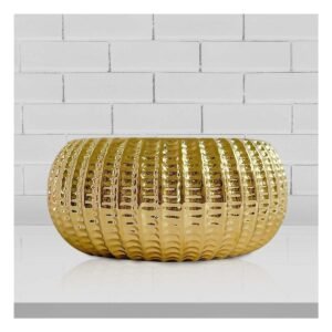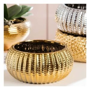 Maceta Decorativa Cuenco Ceramica Galvanizada 15x20x10.5cm Dorado Acanalado