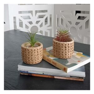 Contenedor Cilindro Cemento 13x13cm Mostaza Tejido Rafia Para Jardin Interior Y+Regalo Sticker