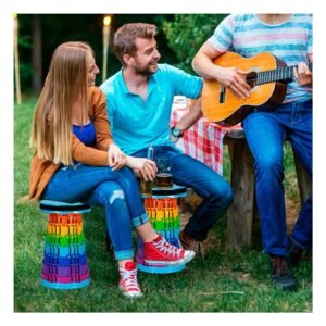 Banqueta Plegable con 2 Seguros Resistentes para Hogar Tapa Celeste Multicolor Y+Regalo Sticker