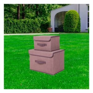 Pack2 Contenedor Organizativo de Tela 25X19X16CM Marron con Borde Marron para Casa