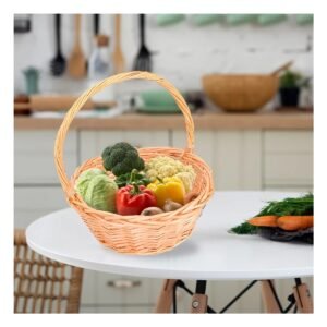 Canasta Ovalada de Mimbre con Dimensiones 28x20x25cm para Uso Domestico