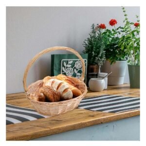 Canasta Circular de Mimbre con Dimensiones 29x29x30cm para Uso Domestico