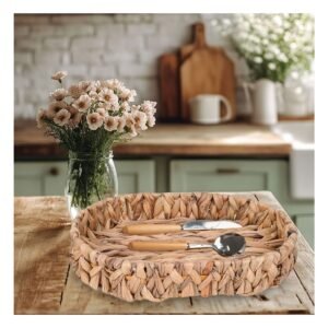 Canasta Circular de Mimbre con Dimensiones 29x29x30cm para Uso Domestico