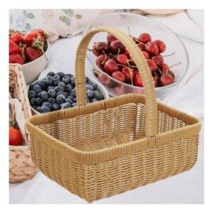 Canasta tejida cuadrada con asa para organizacion en hogar mostaza