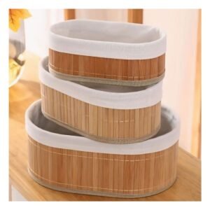 Cestas Ovaladas de Bambu y Tela para Hogar Decoracion y Organizacion Funcional