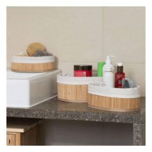 Recipientes Ovalados de Bambu y Tela para Organizar Ambientes de la Casa Y+Regalo Sticker