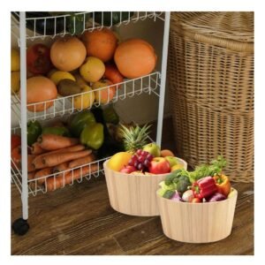 Pack2 Balde de Madera Circular 24x11cm de Textura Suave para Adorno de Interiores