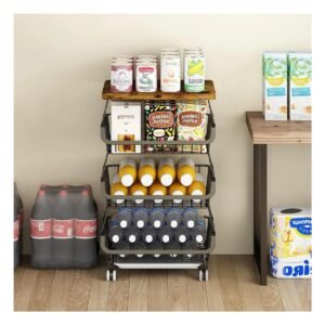 Carrito Clasificador Negro de 4 Bandejas en Acero y Madera con Ruedas