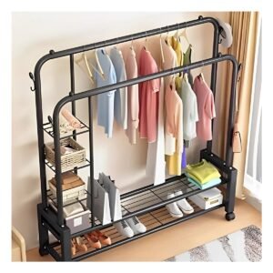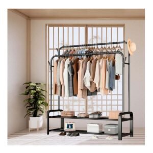 Estante Perchero Colgador Doble negro con 2 Niveles Resistente 40 Kg Y+Regalo Sticker