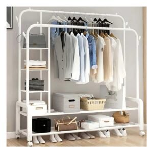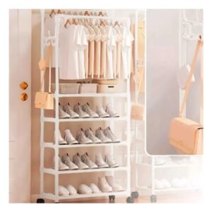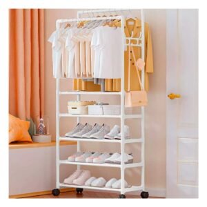 Pack2 Repisa Blanca de 5 Niveles con Doble Perchero Movil para Dormitorio