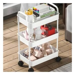 Estante Carrito 3 Niveles con Ruedas y Asas para Hogar Plastico Negro