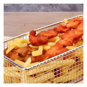 Cesta para Frituras Plateada 25,5x13x7 cm Acabado Metalico Resistente