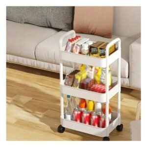 Carrito Organizador 3 Niveles con Ruedas y Asas Plastico Blanco para Hogar