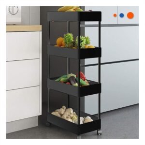 Carrito Lateral De 4 Niveles con 4 Ruedas Negro Plastico para Casa Resistente