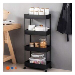 Carrito Lateral De 4 Niveles con 4 Ruedas Negro Plastico para Casa Resistente