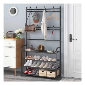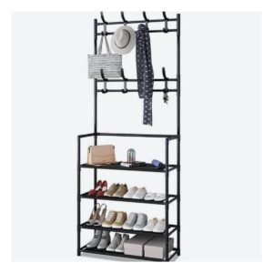Zapatera organizadora con percheros recto color negro para hogar moderno