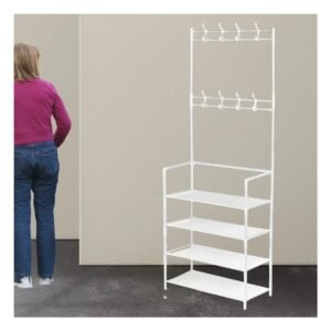 Zapatero Organizador con Percheros Recto Blanco para Hogar y Dormitorio Moderno