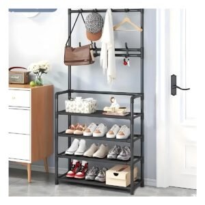 • Zapatera Organizadora con Percheros Recto Negro para Ordenar Calzado en Casa