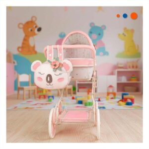Carro para Muñeca con Diseño Ositos y Corazones para Paseo de Juego Rosado 68cm
