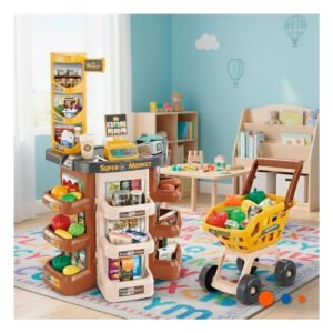 Centro Supermercado con Carrito y Accesorios para Juego de Compras en el Hogar Y+Regalo Sticker