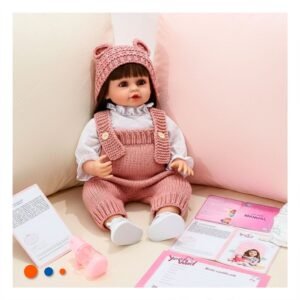 Bebe Yessy con Atuendo Tejido y Gorro Orejitas Rosado de 55cm para Juego Y+Regalo Sticker