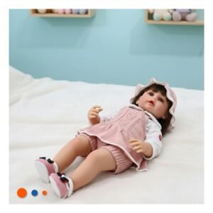 Pack2 Bebe Yessy 55cm con Vestuario Marron Chaleco Peluche Vestidos Pantis y Gorro Completo