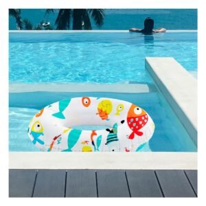 Rueda Inflable de 61 cm con Estampado de Pez para Piscina y Verano Y+Regalo Sticker