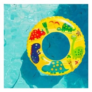 Pack2 Flotador Aro Amarillo de 61 cm con Dibujos Divertidos de Dinosaurio para Piscina